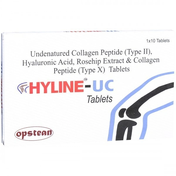 Hyline UC Tablet is a dietary supplement, recommended with diet for optimal health of an individual. It is enriched with Undenatured Collagen Peptide Type (II), Hyaluronic Acid, Rosehip Extract & Collagen Peptide (Type X ).