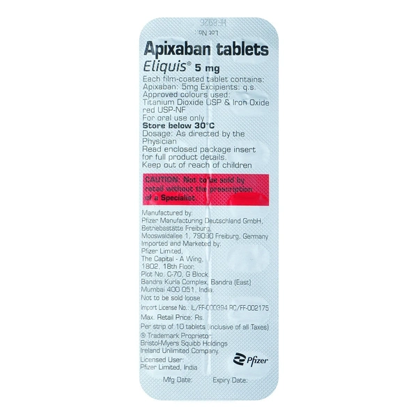 - Composition: Each tablet contains Apixaban 5mg, a proven anticoagulant.