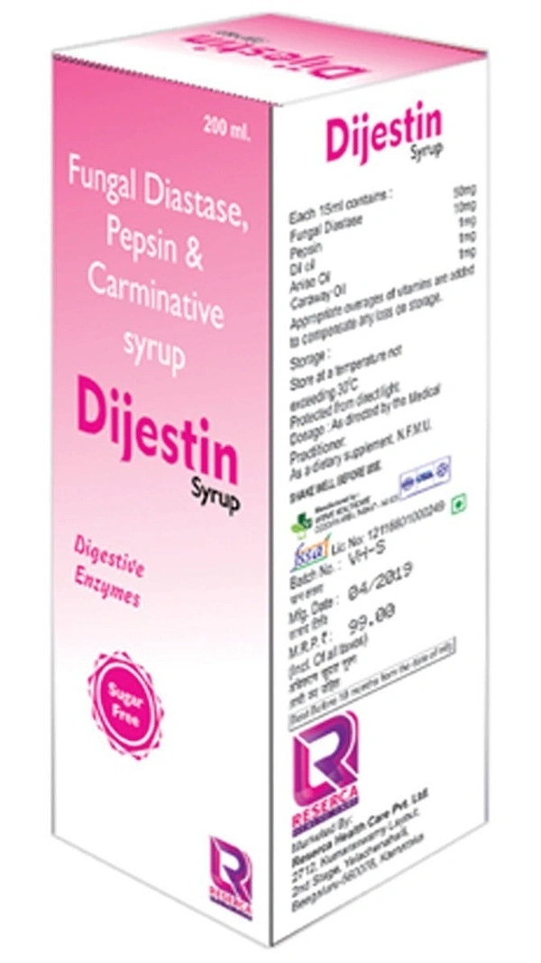 Dijestin Syrup (200 Ml) is your trusted companion for maintaining optimal digestive health. Specially formulated by RESERCA HEALTH CARE PVT. LTD., this high-quality syrup is designed to support digestion and provide relief from common digestive discomforts. Whether you're dealing with bloating, indigestion, or other gastrointestinal concerns, Dijestin Syrup is here to help you feel your best every day.