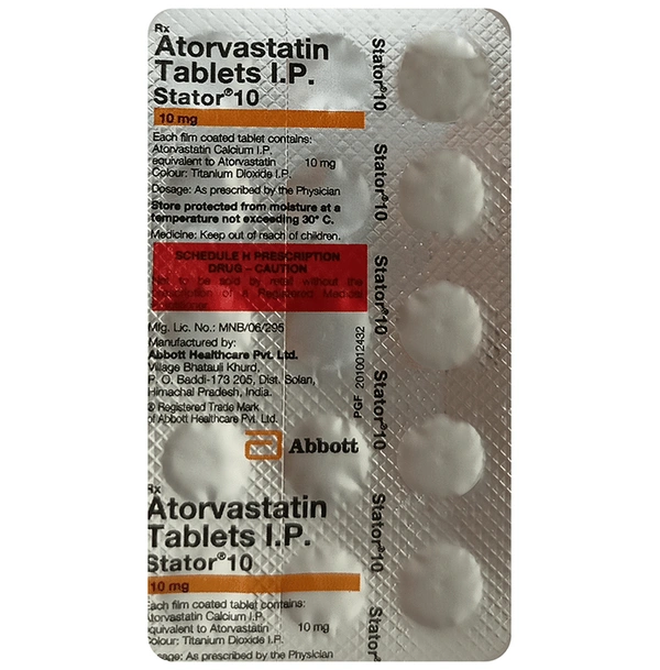 Stator 10 Tablet, manufactured by Abbott, is a trusted solution to help you take control of your cholesterol levels and reduce the risk of heart diseases. Belonging to the statin group of medicines, this tablet works by lowering harmful cholesterol and preventing the buildup of fatty substances in your blood vessels, which can lead to heart attacks or strokes.