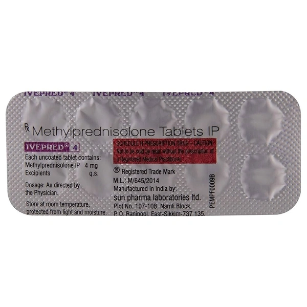 Your health deserves the best, and Ivepred 4Mgtab is here to deliver just that! Formulated by the trusted brand SUN PHARMA, this prescription medication is designed to cater to specific health needs with precision and care. Whether you’re managing a chronic condition or addressing acute health concerns, count on Ivepred to support your journey to better well-being.
